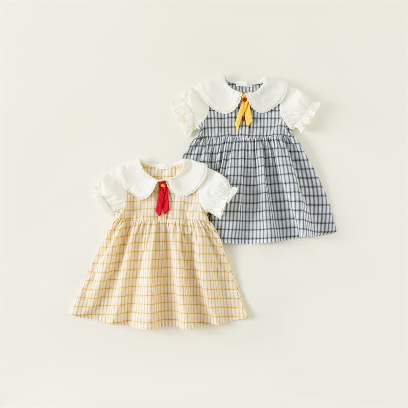 Toddler Girl Plaid Puff Sleeve Lapel Collar Dress