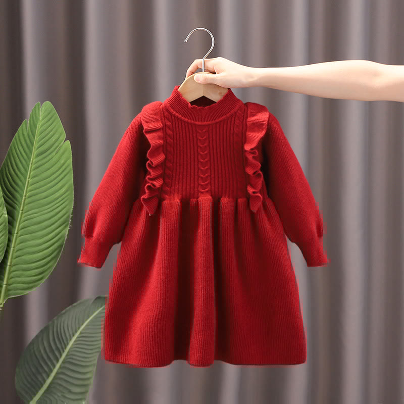 Toddler Girl Solid Color Stringy Selvedge Knitted Dress