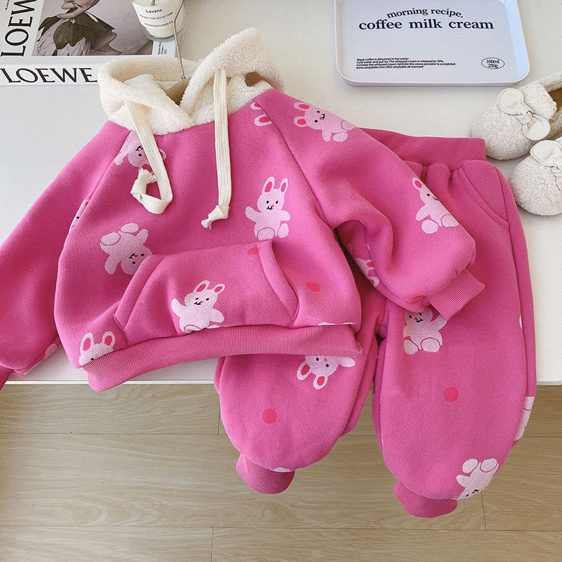 Toddler Girl Hooded Bunny Fleece 2 Pieces Set