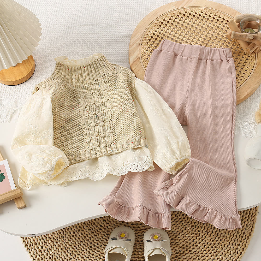 Toddler Girl Lace Solid Color Knitted Sweater