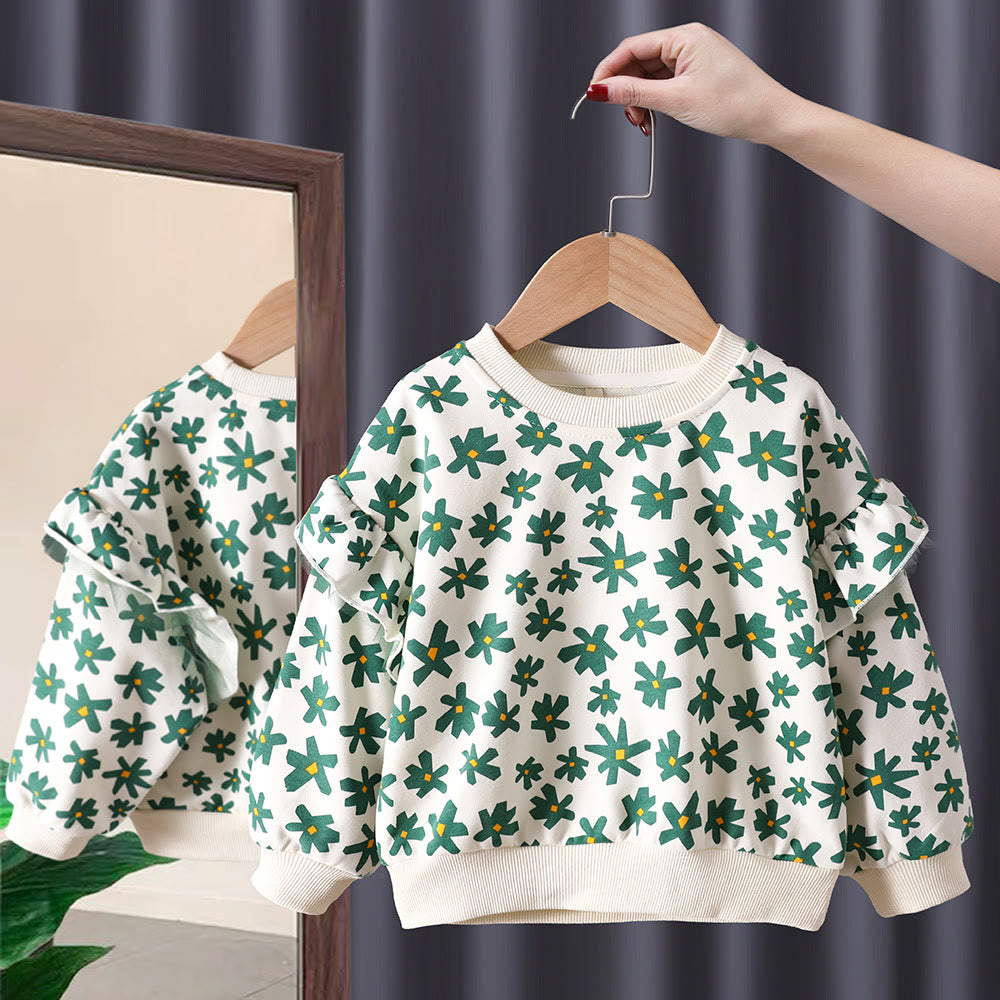 Toddler Girl Flower Lace Sleeves Sweatshirt