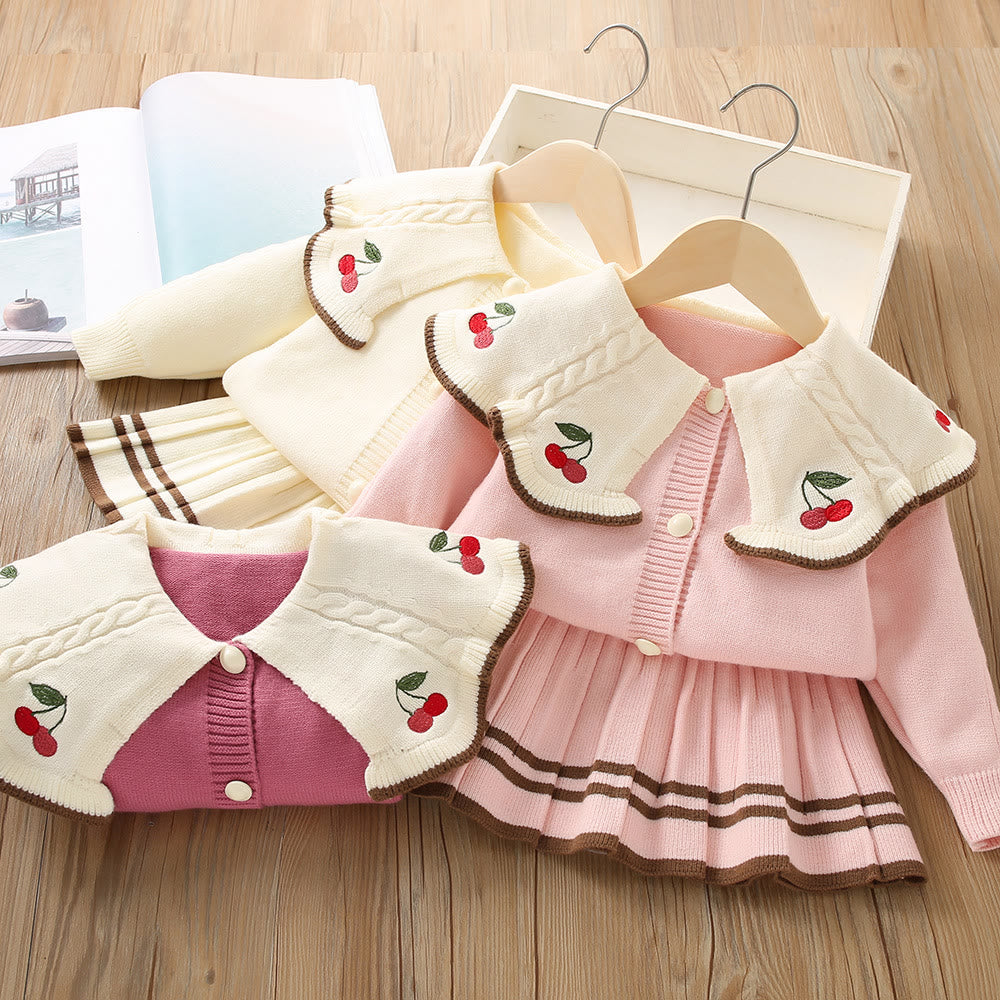 Toddler Girl Lapels Embroidered Cherry 2 Pieces Set