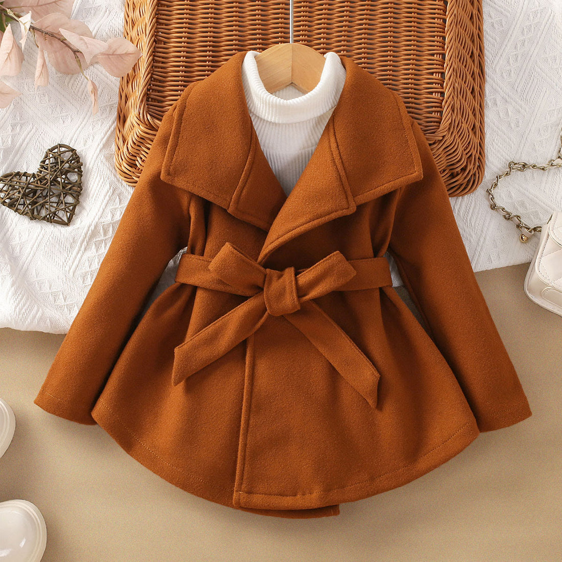 Toddler Girl Brown Lapels Bow Coat