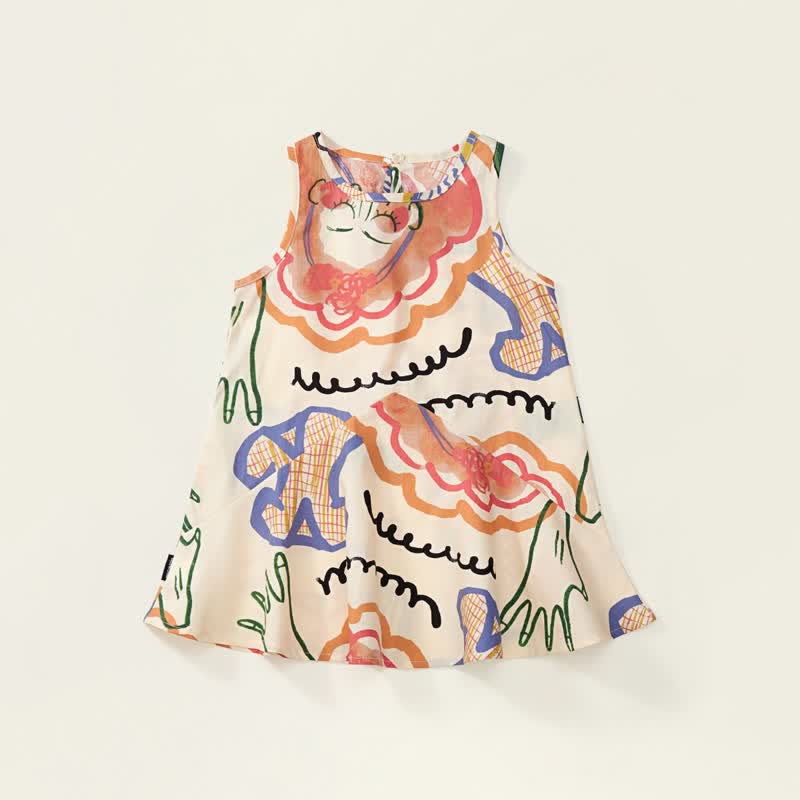 Toddler Retro Graffiti Apricot Sleeveless Dress