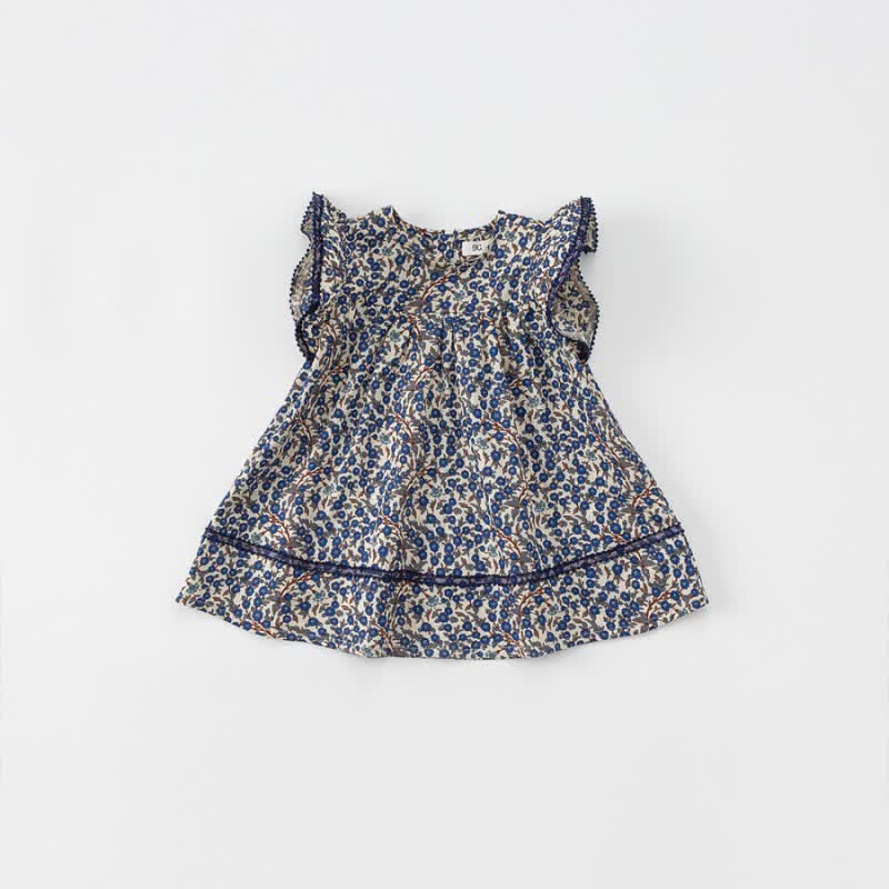 Toddler Girl Lace Lapels Flower Blue Sweet Dress