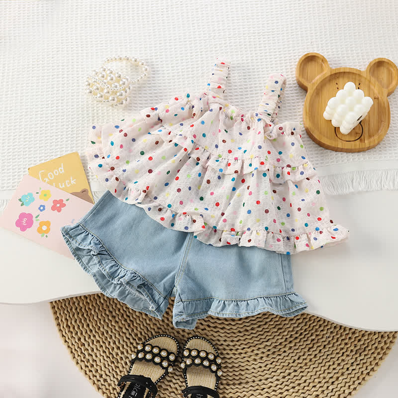 Toddler Girl Dot Camisole and Denim Shorts Set