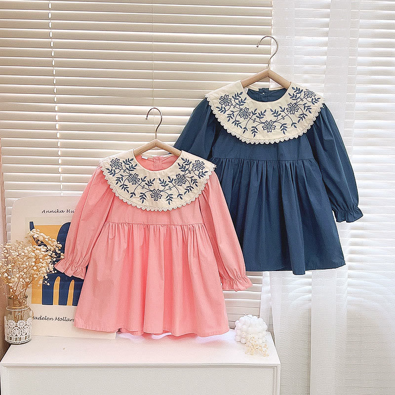 Toddler Girl Vintage Embroidered Flower Lapel Dress