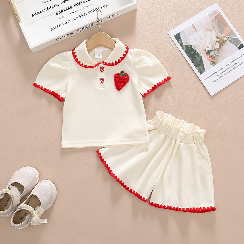 Toddler Girl Strawberry Lapel Shirt and Shorts Set