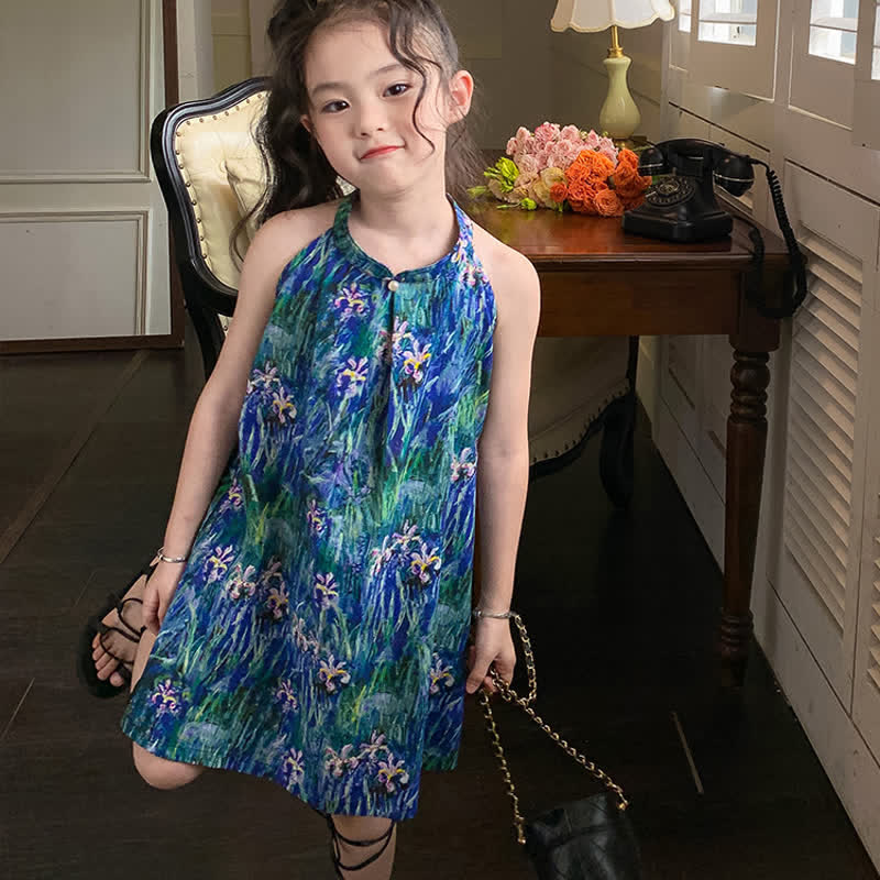 Toddler Girl Color Block Halterneck Tie Dress Loose Dress