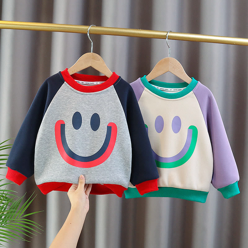 Toddler Contrast Sleeves Smile Color Block Fleece Sweatshirt