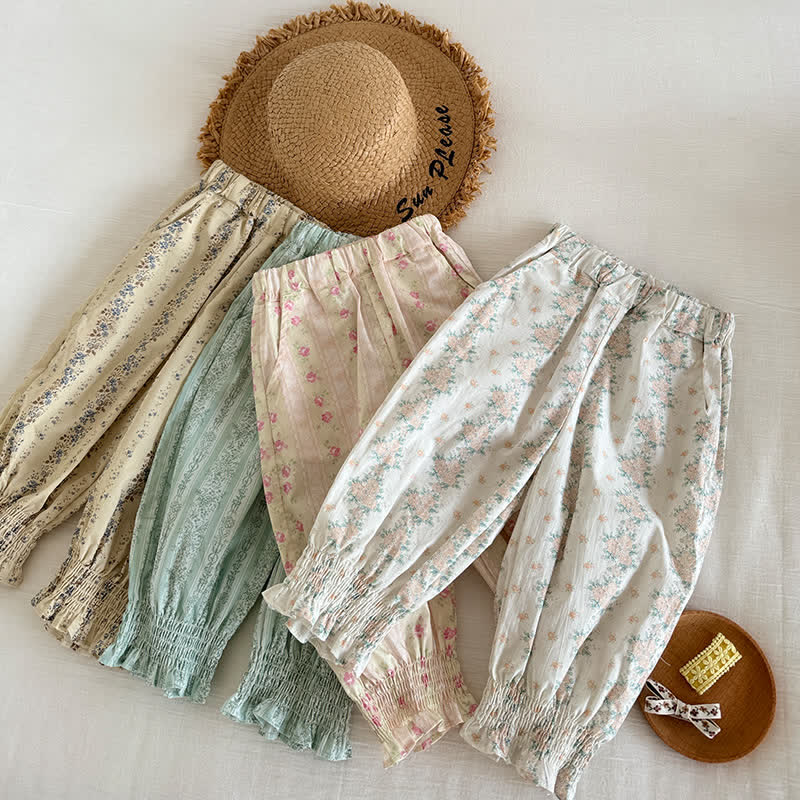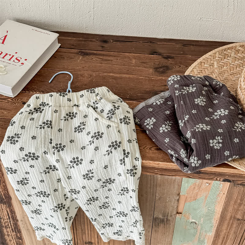Toddler Pastoral Flower Cotton Yarn Pants