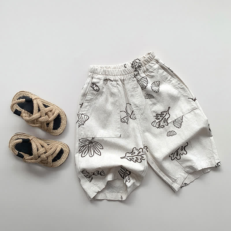 Toddler Linen Pine Cone Leaves Capri Pants