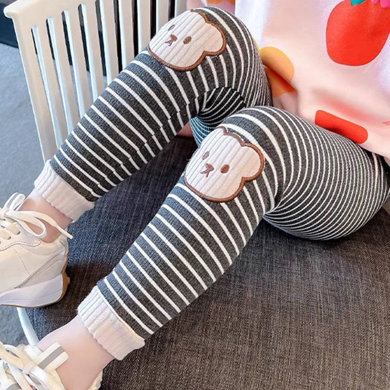 Toddler Girl Striped Patch Bear Leggings