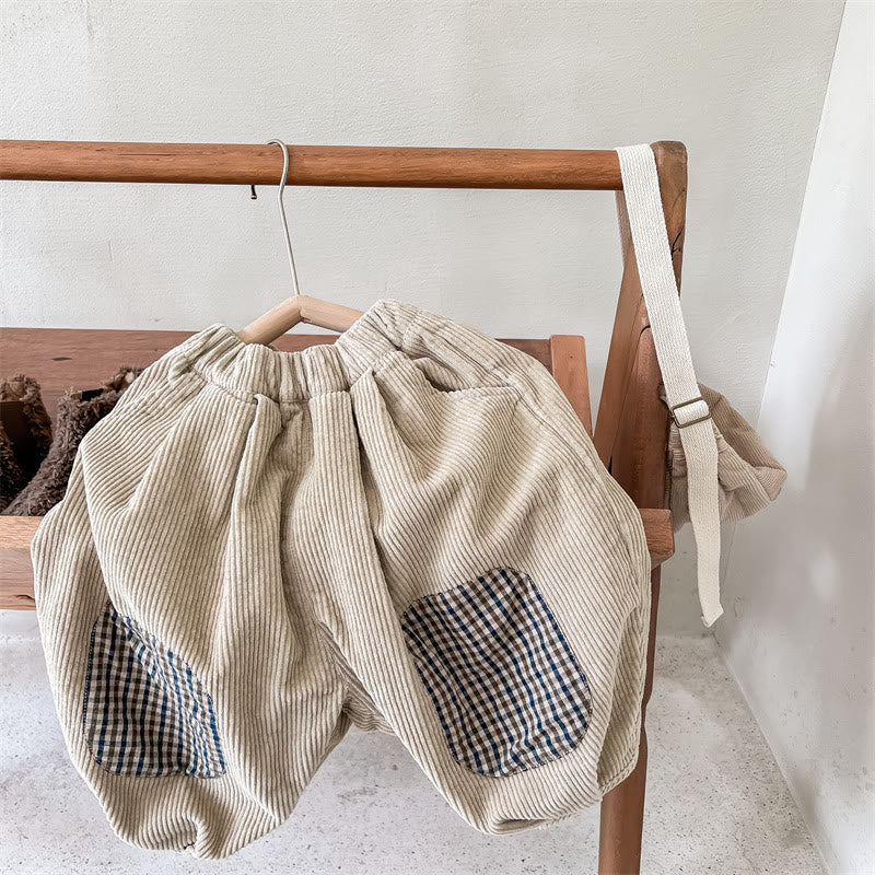 Toddler Corduroy Plaid Patch Pants