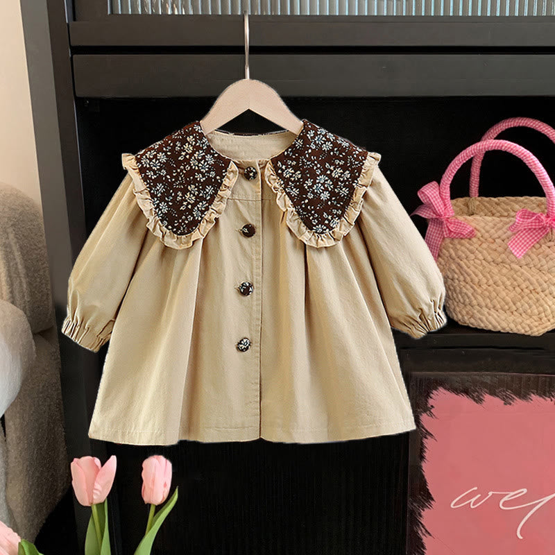 Toddler Girl Lapels Puff Sleeves Simple Coat