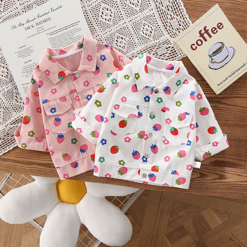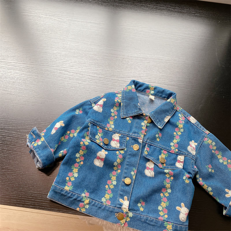 Kid Girl Solid Color Denim Jacket 2-piece Set