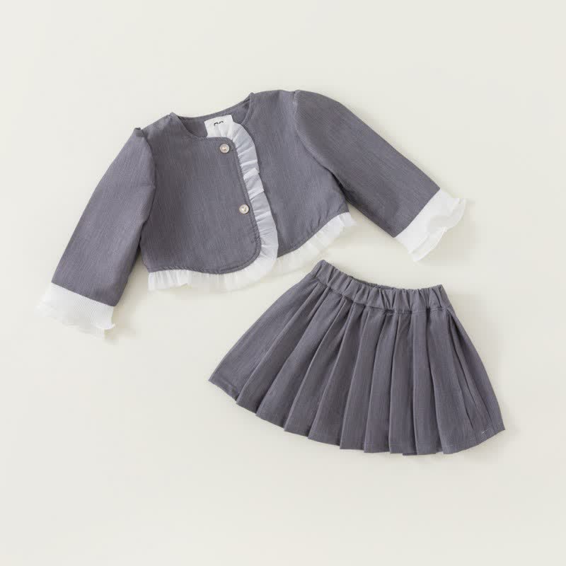 Toddler Girl Lace Trim Jacket and Skirts Set