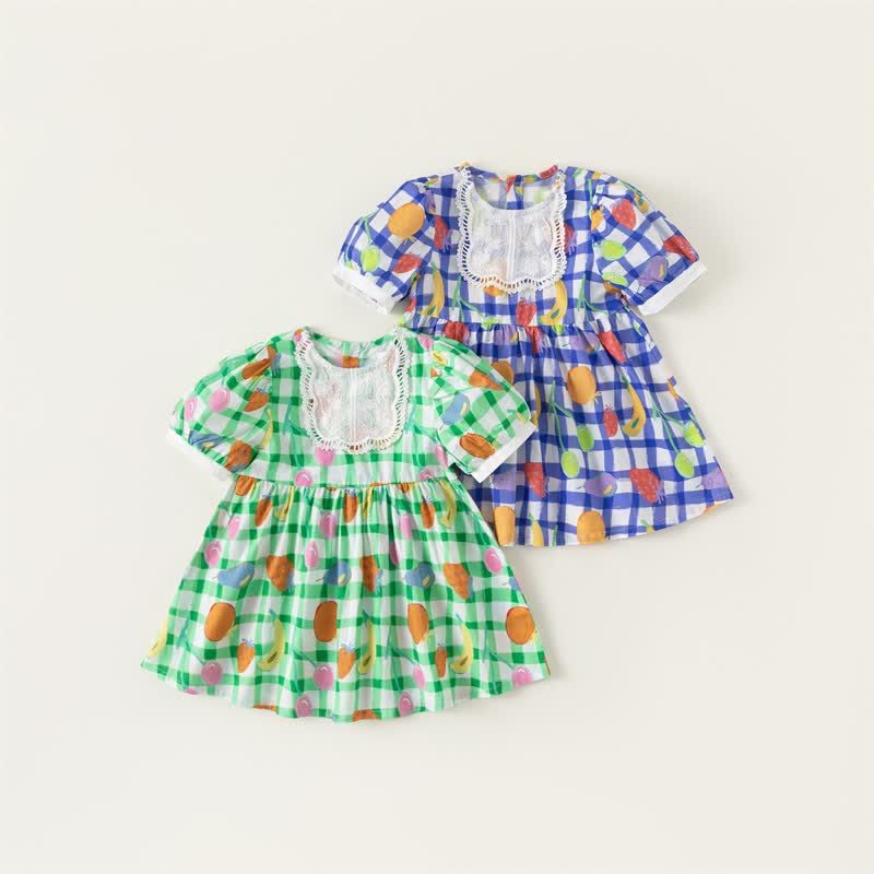 Toddler Girl Colorful Fruit Lapels Dress