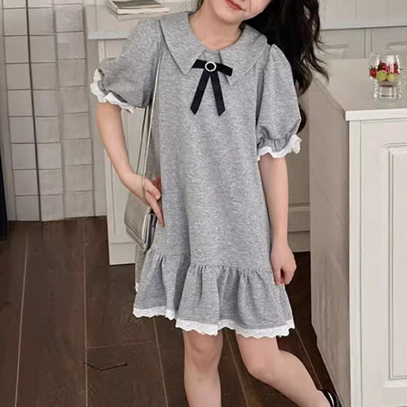 Kid Girl Preppy Style Bow Ruffled Polo Dress