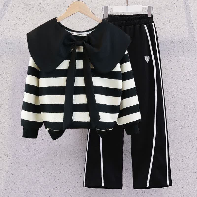 Kid Girl Lapel Striped Long-sleeved 2-piece Set