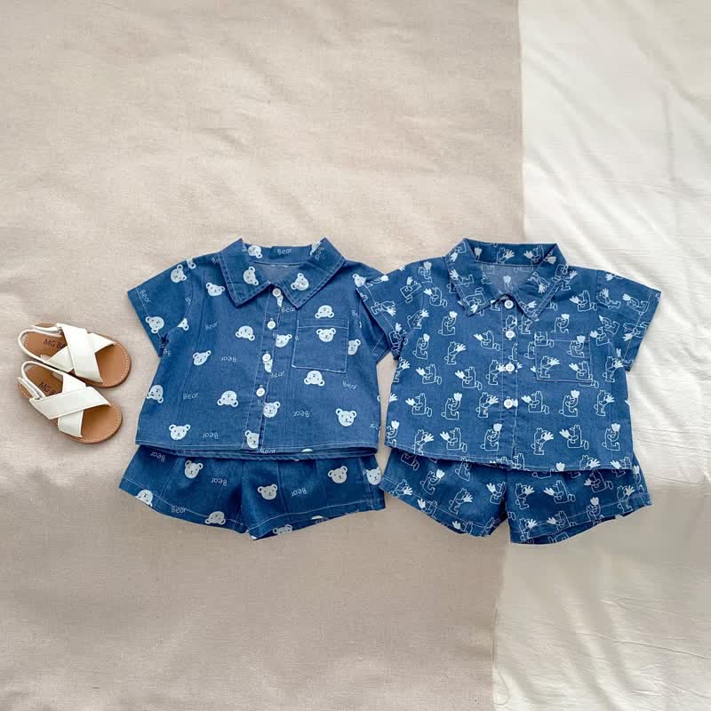 BEAR Baby 2-Piece Denim Dino Blue Set