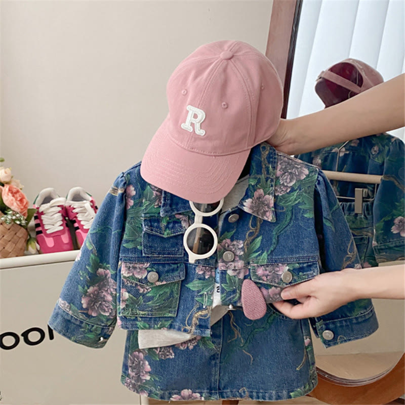 Toddler Girl Denim Flower Leaves 2 Pieces Set