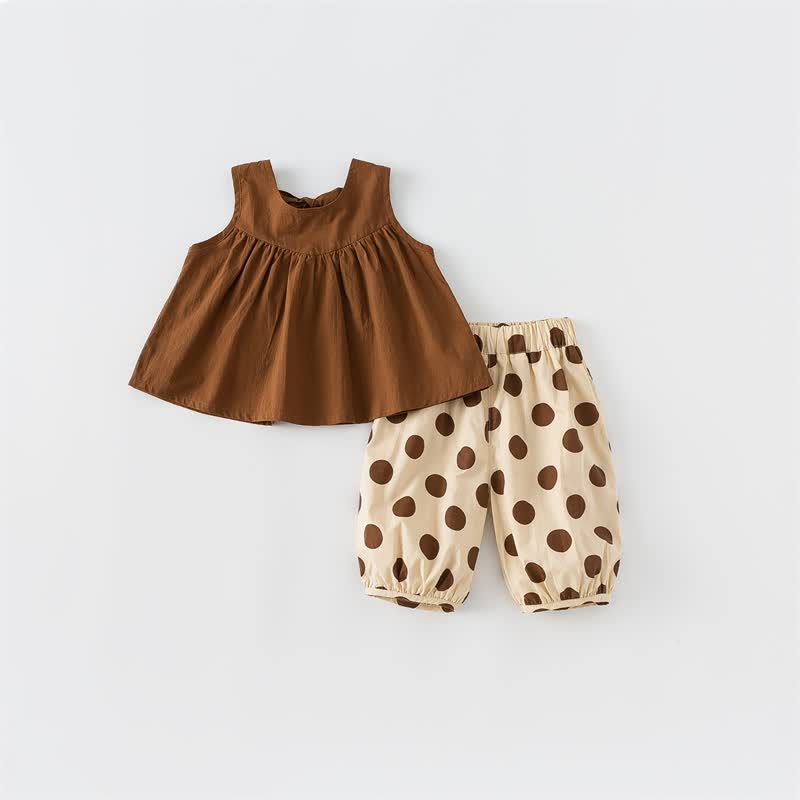 Toddler Girl Bowknot Camisole and Dot Pants Set