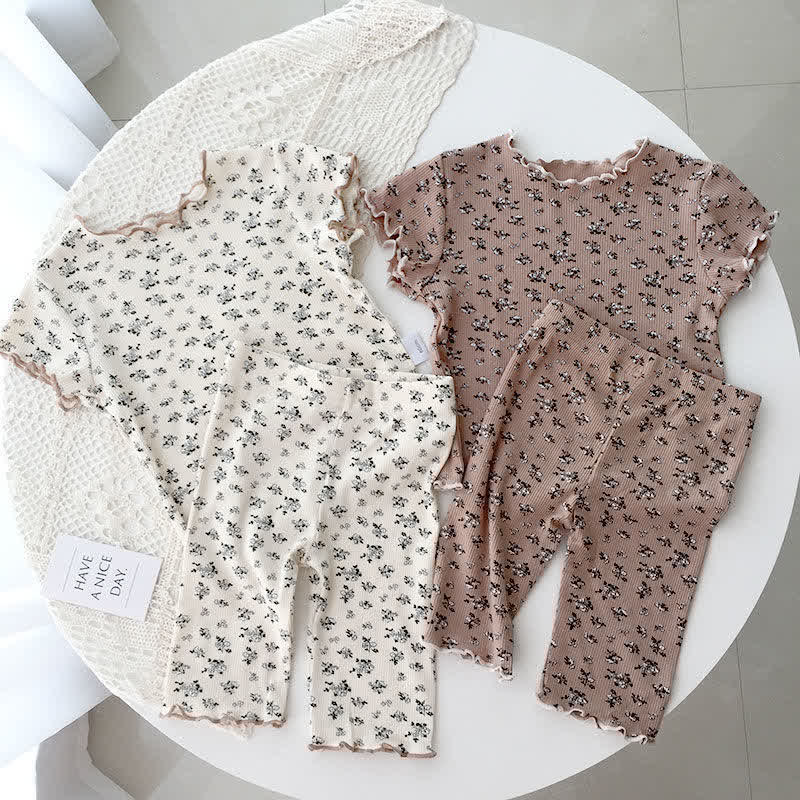 Kid Girl Fungus Trim Pajamas 2-piece Lounge Set