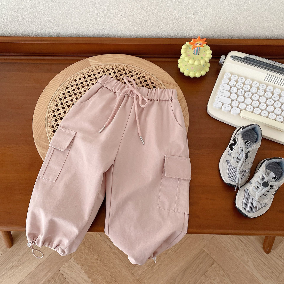 Kid Girl Solid Color Wide-leg Folrals Pants
