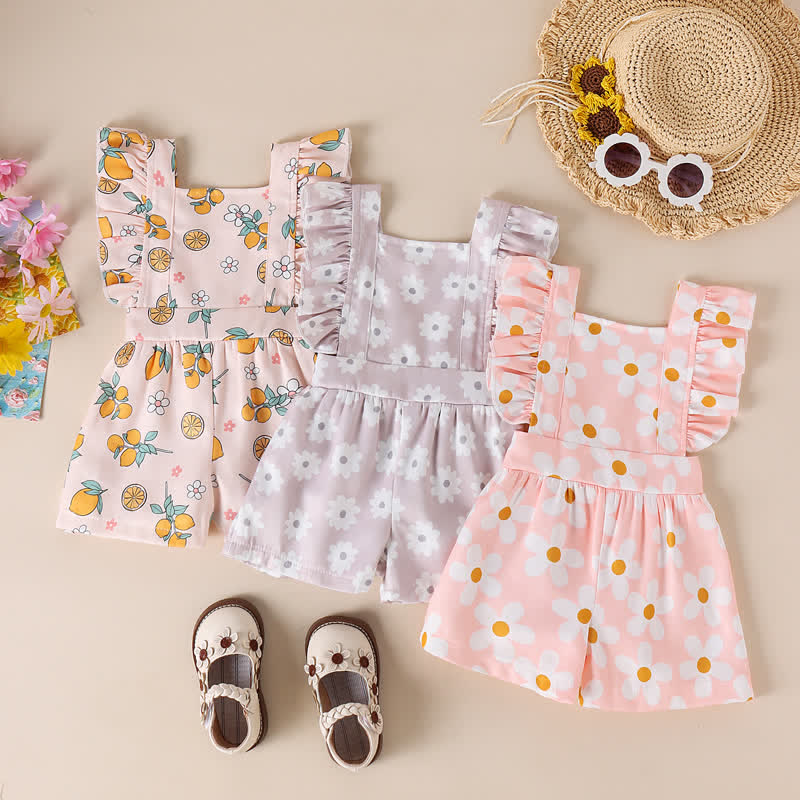 Toddler Girl Flower Ruffled Sweet Jumpsuit