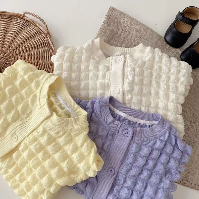 Kid Girl Bubble Waffle Cardigan Jacket Top