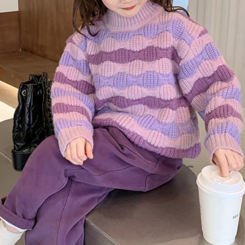 Kid Girl Purple Striped Pullover Knit Sweater