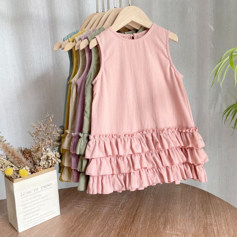 Toddler Girl Solid Color Lace Trim Sleeveless Dress