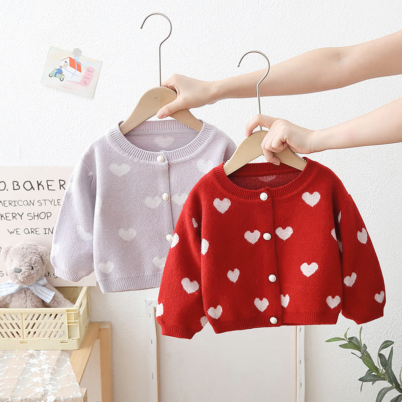 Toddler Girl Knitted Heart Puff Sleeves Cardigan