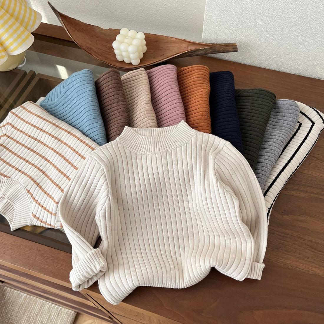 Baby Toddler Solid Color Striped Sweater
