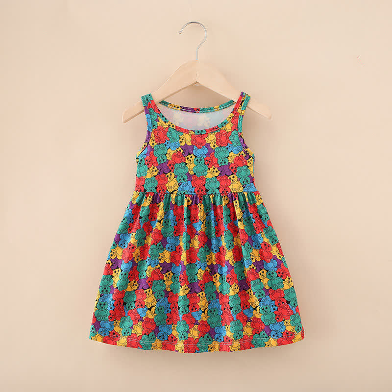 Toddler Girl Multicolor Bear Sleeveless Dress