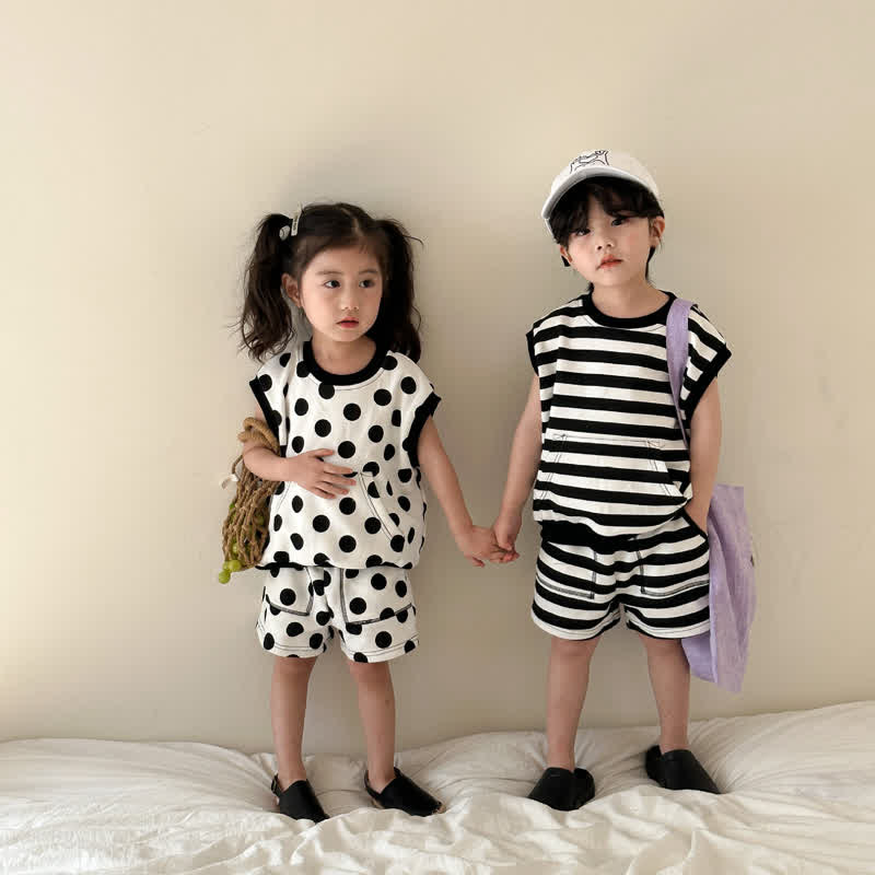 Toddler 2-Piece Dots Striped Sweatsuit Set