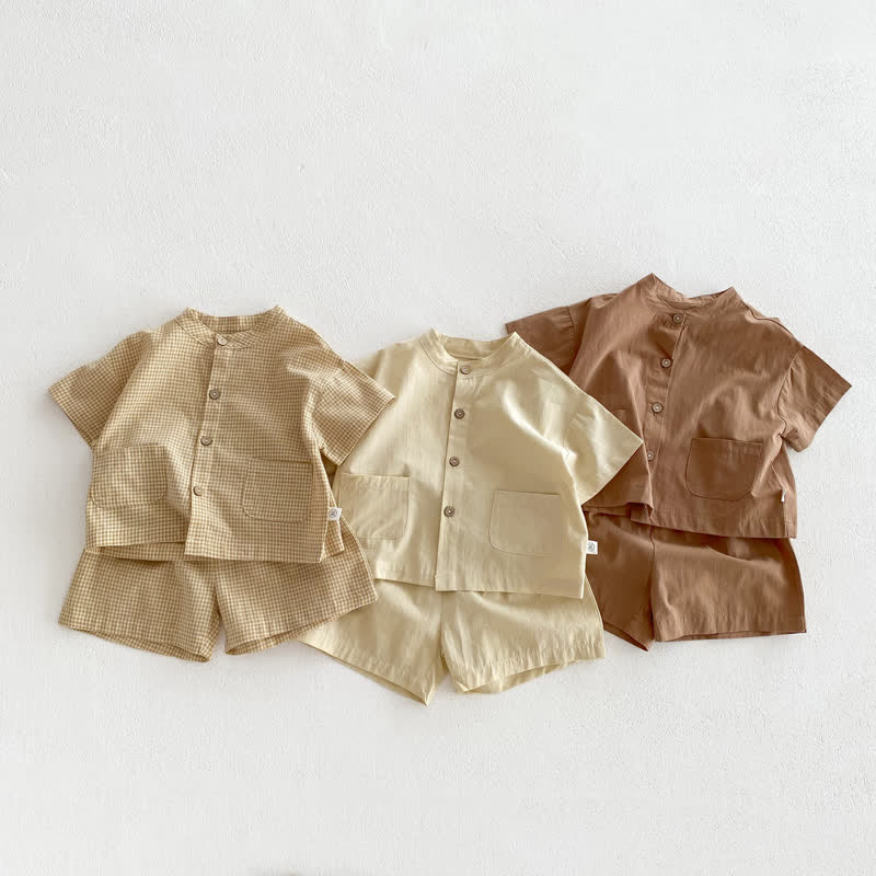 Toddler Casual Knitted Plaid T-shirt Shorts