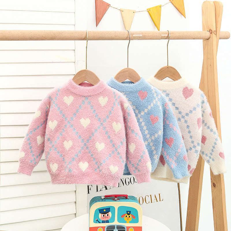 Toddler Girl Thermal Fuzzy Heart Diamond Sweater