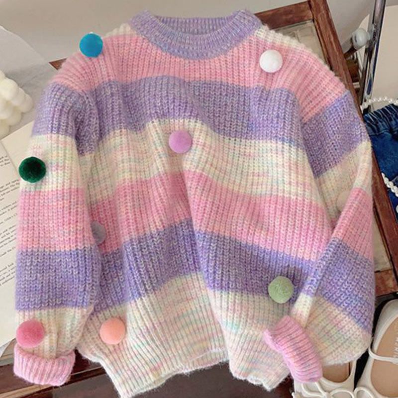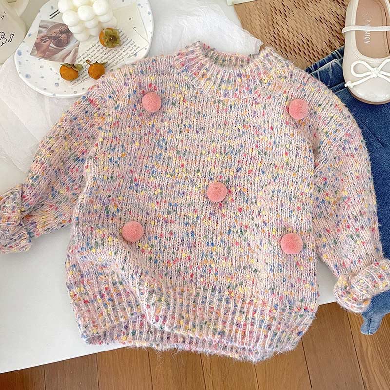 Toddler Girl Multicolor 3D Ball Loose Sweater