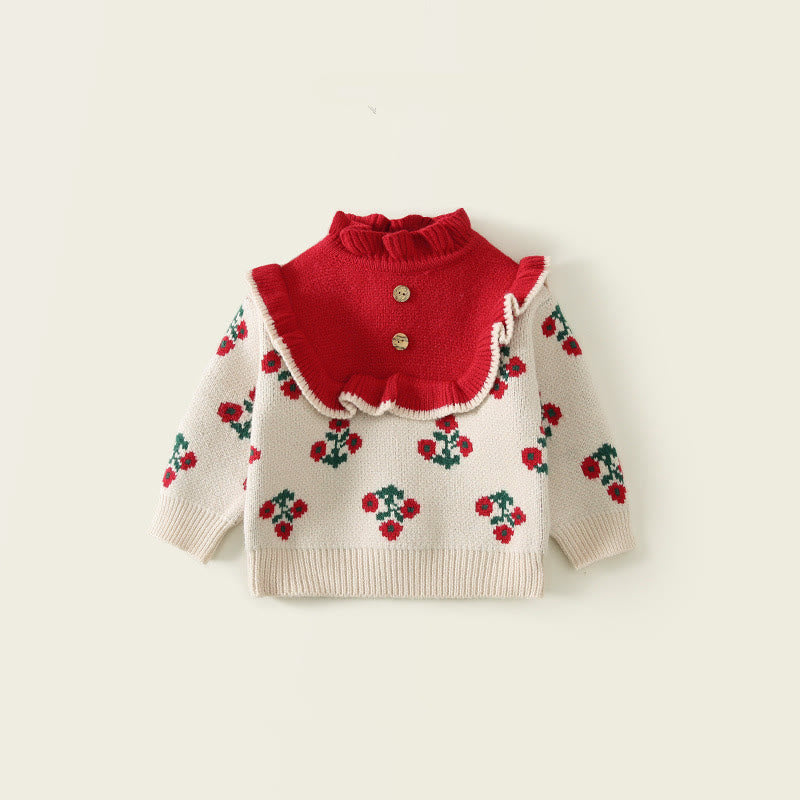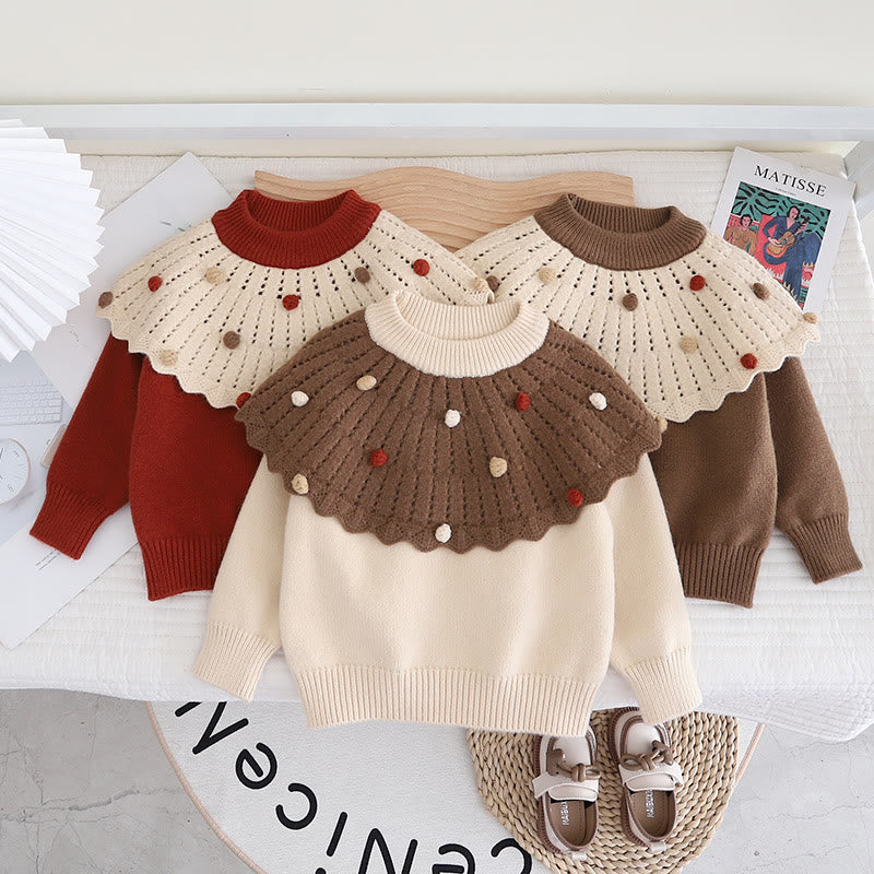 Toddler Girl Lapels 3D Hairball Knitted Sweater