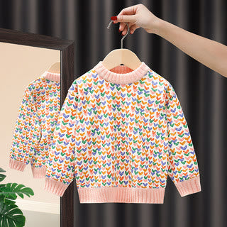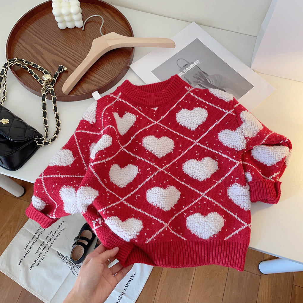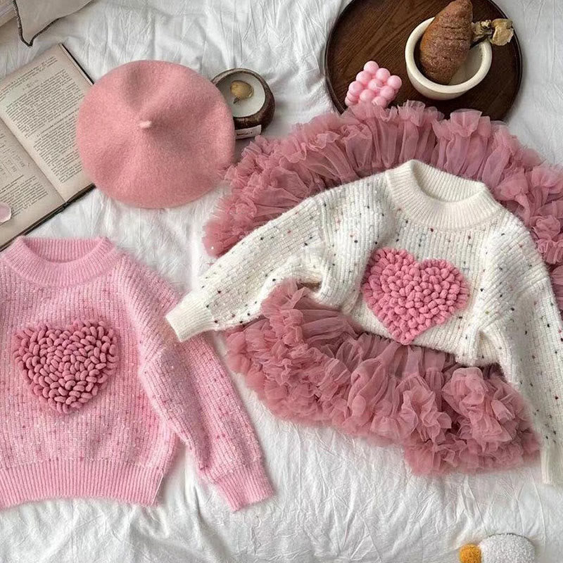 Toddler Girl Heart 3D Hairball Knitted Sweater