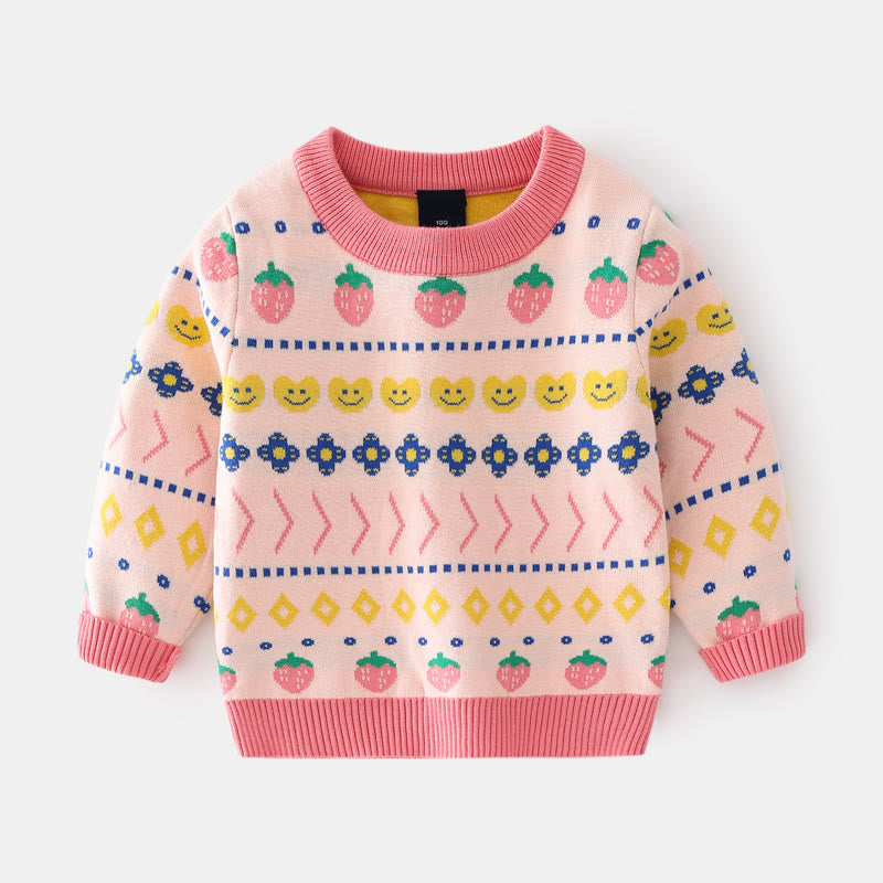 Toddler Girl Multicolor Knitted Fleece Sweater