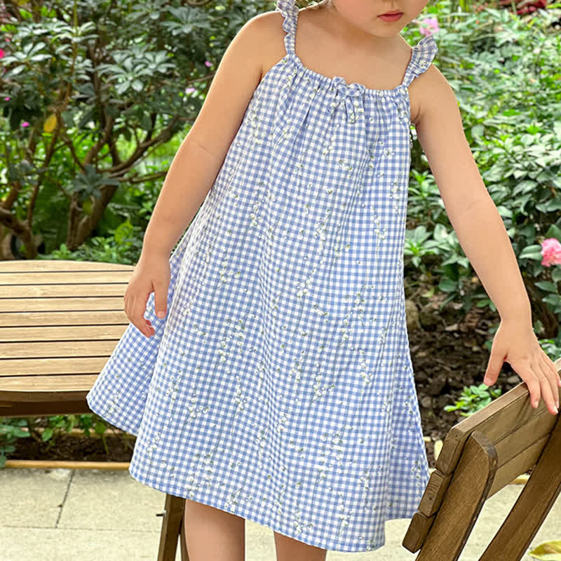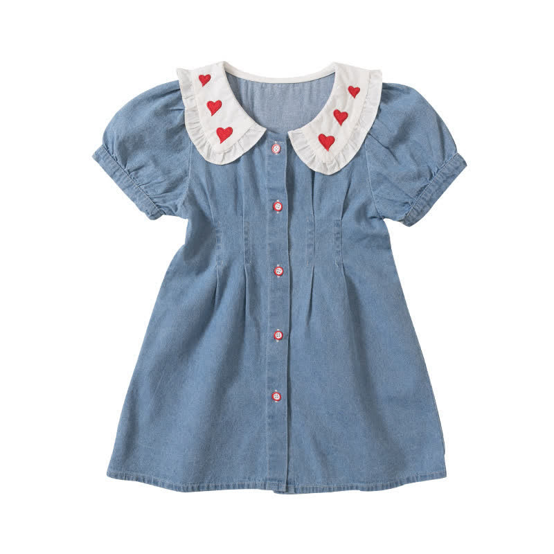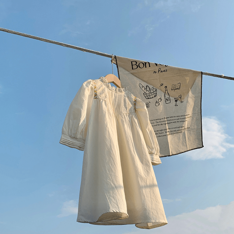 Kid Girl French Pleated Stand Collar Embroidery Dress
