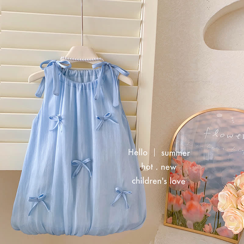 Kid Girl Sleeveless Bows Bud Vest Dress