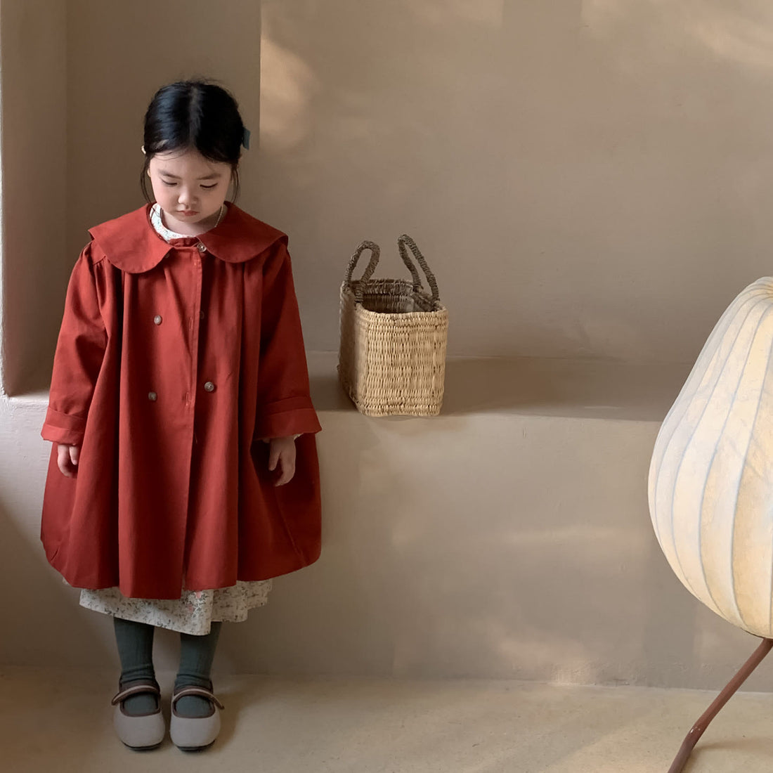 Toddler Lapels Solid Color Mid-length Coat