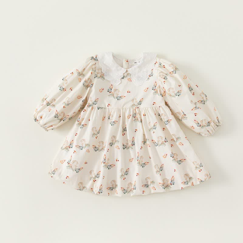 Toddler Girl Retro Bunny Lace Lapel Collar Dress