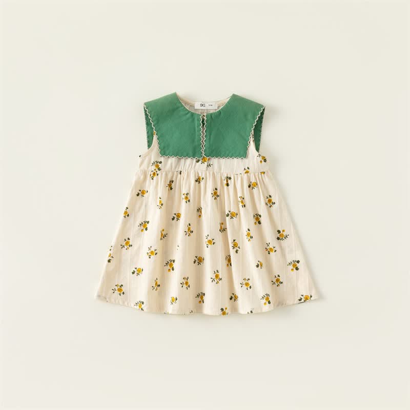Toddler Girl Lapel Collar Flower Sleeveless Dress