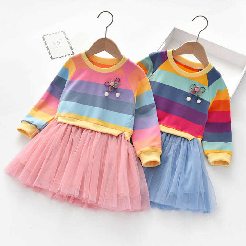Toddler Girl Bow Rainbow Colorful Tulle Dress