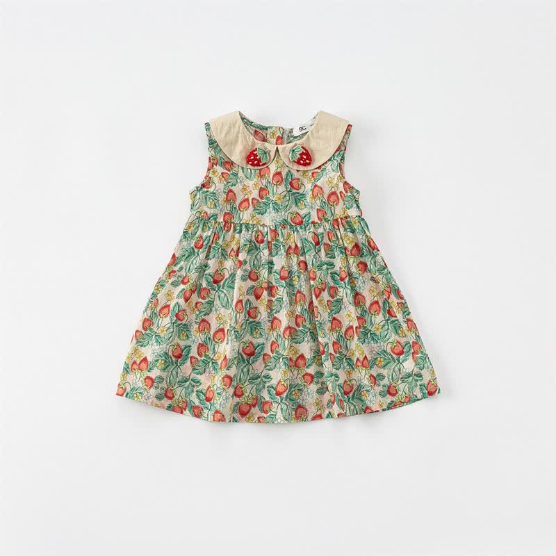 Toddler Girl Strawberry Lapel Collar Sleeveless Dress